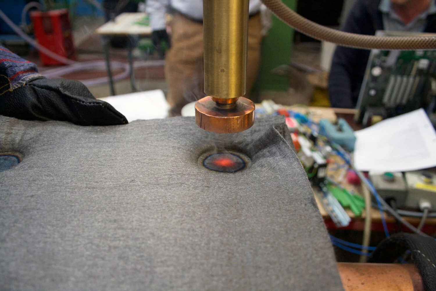 The project of The Soft Side of Steel started with a research into metal specialists in the UK and how the metal manufacturing industry has changed since the emergence of robotics and other automated productions. Many metal related professions have since disappeared or declined, with probably the blacksmith being the best example. It then turned out that a once Europe-wide leading company in producing resistance welding machines for the industry, Sciaky, was left with only one existing branch which was located in Slough. Our intention of collaborating with them was not to solely use their expertise or supply, but also to try and develop a material and process combination, which might have the potential to revitalize their equipment and skills.