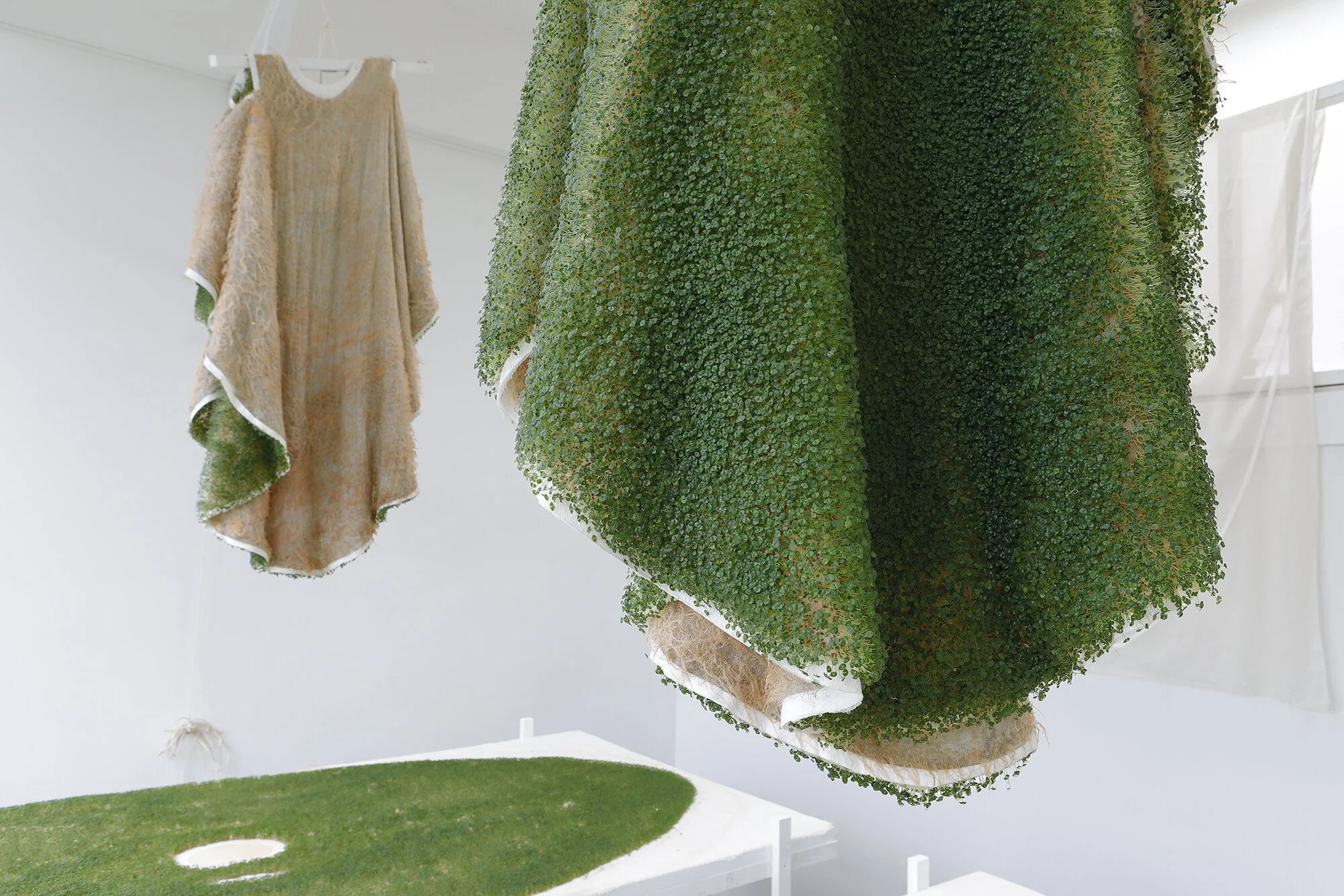 The idea of growing surface materials is shared by Dasha Tsapenko, although her focus is on a different application. Growing Fur seeks to rethink our relationship to clothing and in the process, our place in the ecosystem. By cultivating seeds onto fabric, in this case Chia seeds, she has created wearable living surfaces that require nurture and care. Whilst still relatively conceptual, the idea is a far cry from those established by fast fashion and one that forces us to reconsider the way in which we consume our clothing.