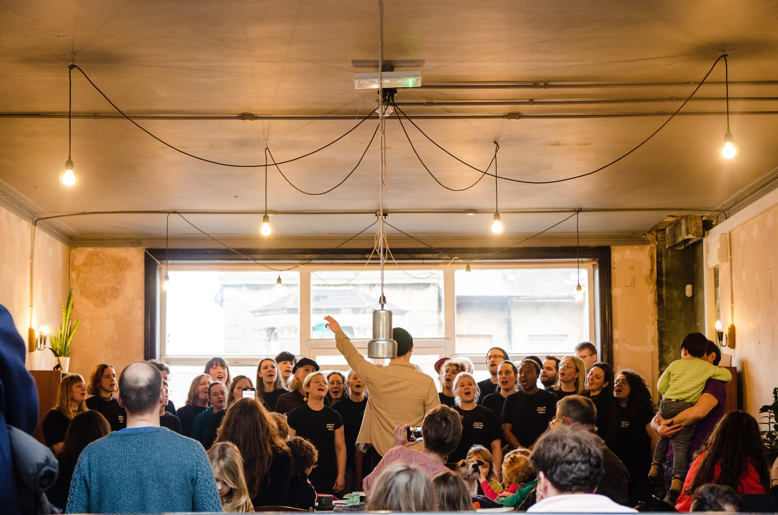 The motivation behind the initial introduction of the choir goes a long way in explaining what the space is all about, and a huge part of that is connected to how music can make you feel, as Hughie explains, “Anyone can get so much joy from music – all of us. I come out of a choir session and feel so full of energy because you’ve accessed that bit of your body physically but also emotionally.” When he first decided to see if anyone was interested in joining a choir he expected 10-15 people to turn up for the first session but following a call out on Facebook, he welcomed 45 excited folks to come and hear more about his idea. The idea was fairly simple – get together as a group, learn how to sing and do some pop covers (and maybe have a drink or 2 together in the process.)