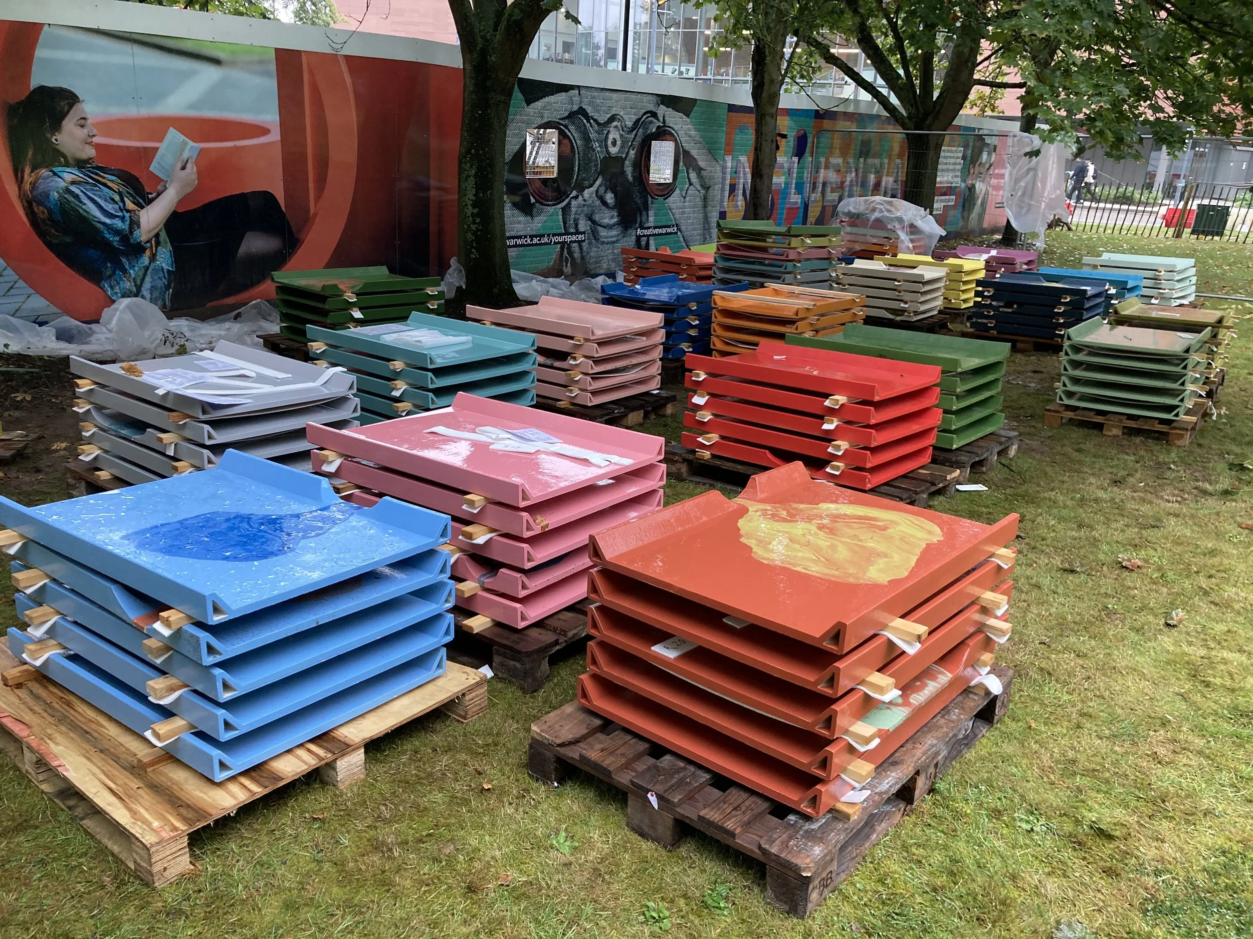 MR: Colour is something that occupies me more and more. Tiles are and have been coloured forever, so I’m in good company, but it is tricky for me as I find it joyous and freeing whilst also demanding of a justification and reason to use it. My wife, graphic designer Marine Duroselle, is very confident with colour and doesn’t understand my inner struggle, but I don’t have the background – Manchester is well grey! – and experience to simply pluck a palette and roll with it. A self-led project this year titled Congregate will allow me and colour to move with more fluidity, and I’m looking forward to that! However, for site-specific work, I believe that I need to reference and or ask the people and community who will live with the piece what they think. I needed twenty-one colours for Warwick - a lasting nod to Coventry being the UK City of Culture 2021 - and had to make my selection in lockdown without being able to get on their campus and to the local area. So, with lots of help, I came up with an online exercise that asked local people literally and metaphorically about colour in their area. The results were amazing, and the answers directly created a database of colour that I could then artistically choose from. For a new mural in Leeds, I focused in on a pallet of colour that was used by the Burmantofts Pottery – a local, now closed factory that produced influential works in the 19th Century. I guess I’m always looking for a related steer, and once I have the info, then that frees me up to use it how I see fit.
